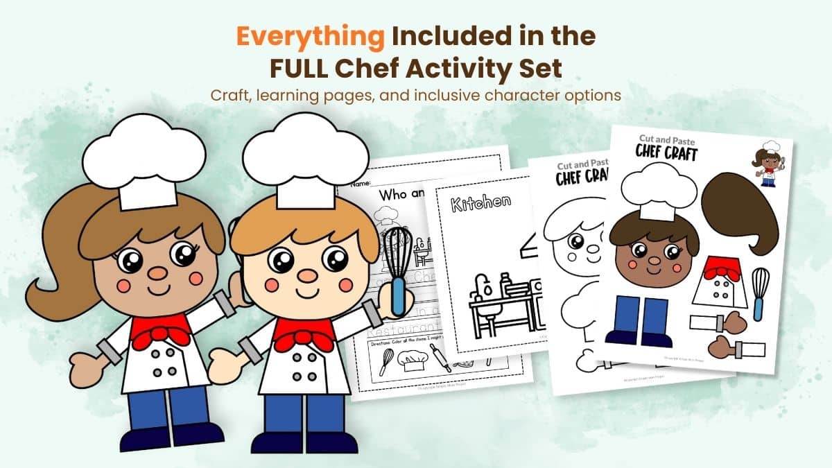 Save hours of planning and upgrade to the full Chef Craft Template Pack —includes multiple skin tones, boy & girl versions, and bonus worksheets that turn one simple craft into a complete learning activity.