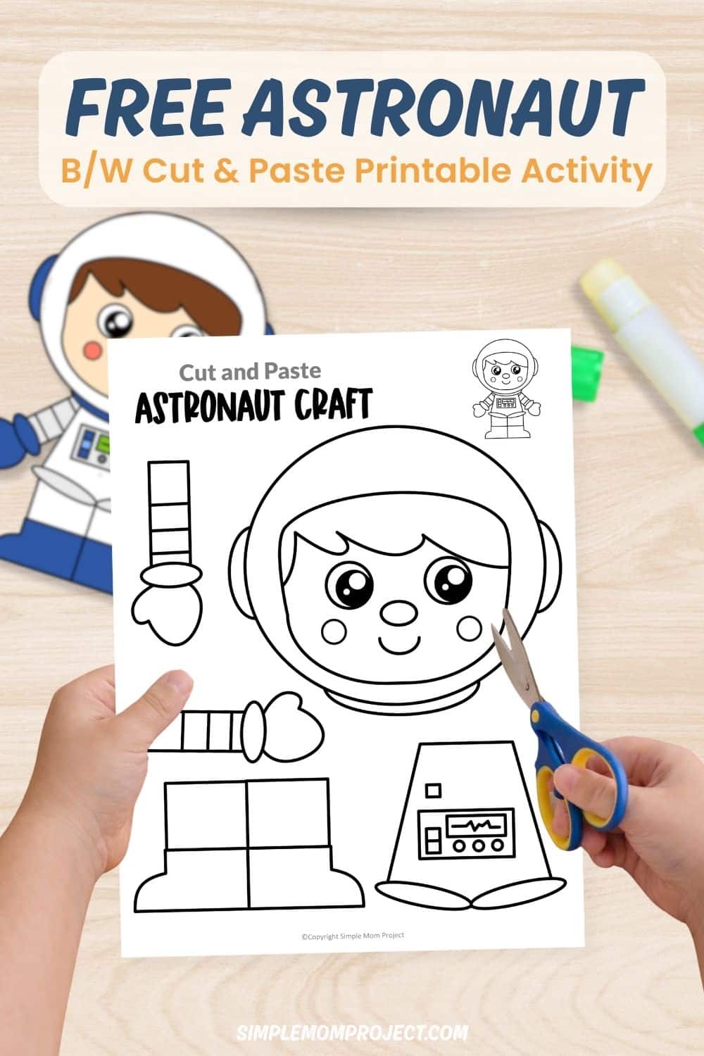 With this easy solar system craft printable, kids learn about the moon’s texture, craters, and shape while practicing fine motor skills, cutting, and following directions.