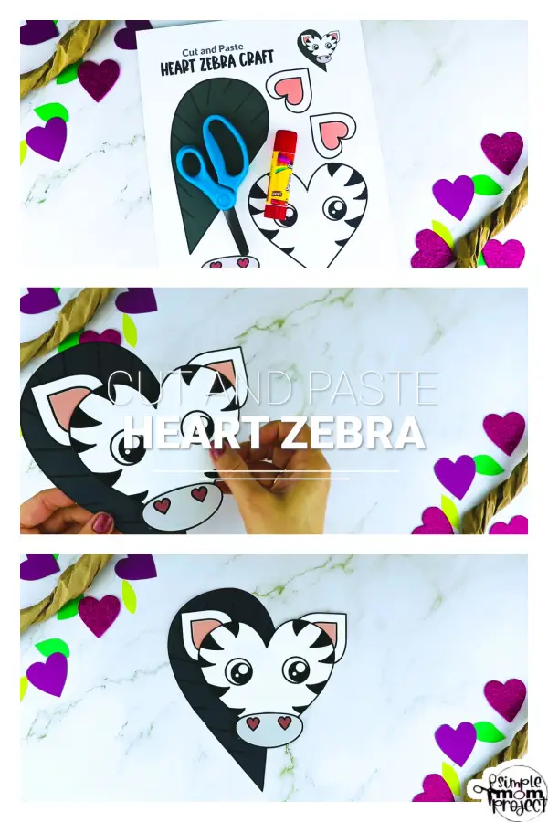 This heart zebra craft only requires cut and paste steps, so it’s a great opportunity for all the kids who are just learning how to use the scissors to practice.
