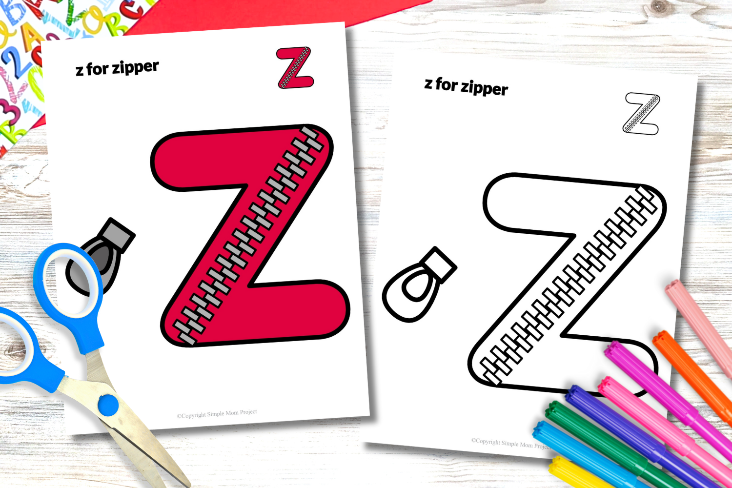 Free Printable Lowercase Letter z for Zipper Craft Template Flatlay